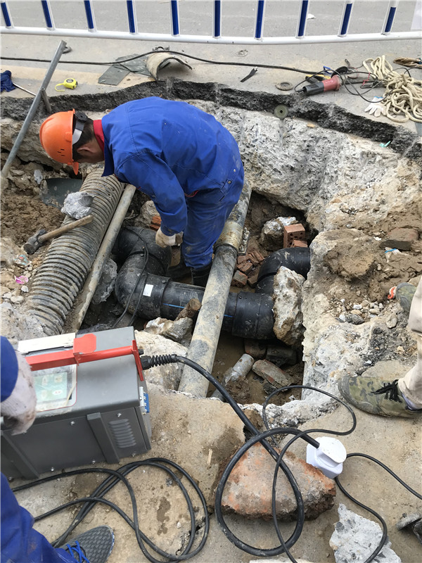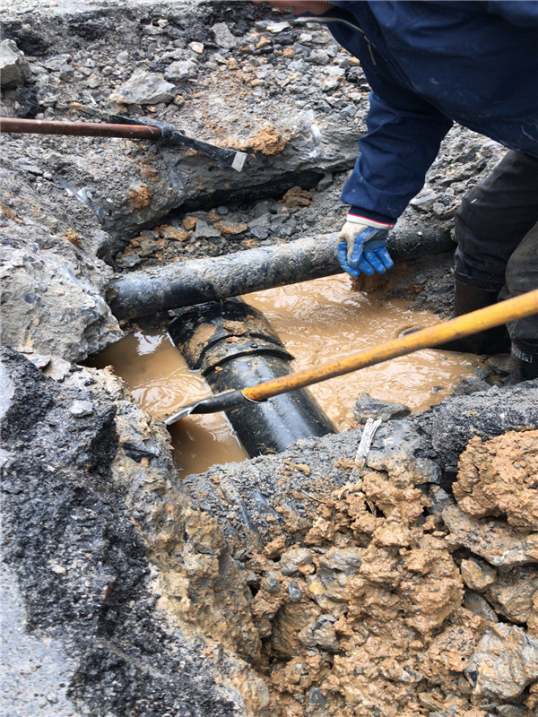 經(jīng)檢測,共計探測漏水點1處,為PE電熔直接開裂導致漏水。開挖后發(fā)現(xiàn)管道周邊泥土已經(jīng)被沖空。該項目消防管道為PE管,管徑DN200。漏水點處為路面下方,混凝土厚度50cm。